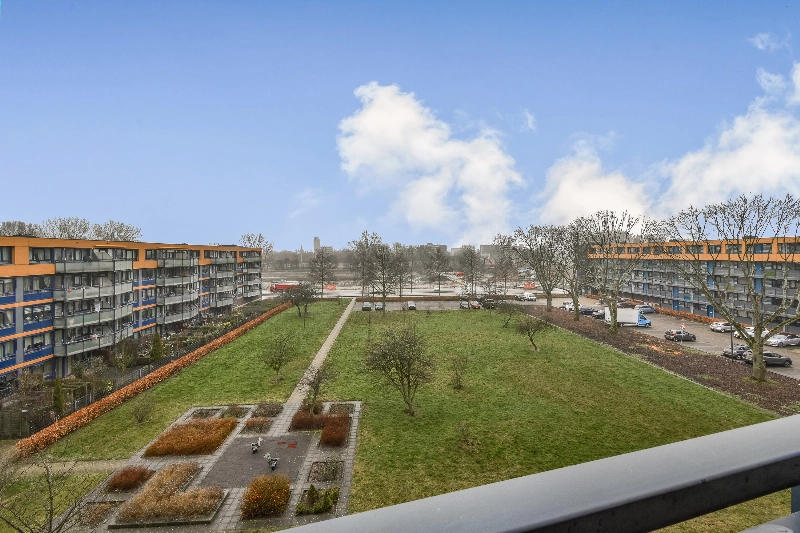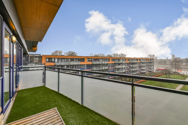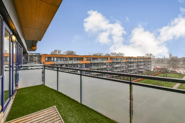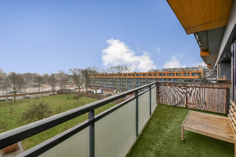 De lichte woonkamer geeft je direct toegang tot het ruime balkon van ruim 10m² met vrij uitzicht op het groen aan de achterzijde. Geen inkijk, wél rust. Perfect voor je ochtendkoffie of een drankje bij zonsondergang.