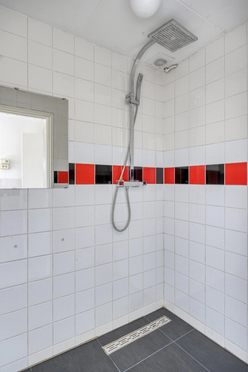 Via deze wasruimte bereik je de badkamer. Ook deze is ook weer ruim van opzet. Het geheel is eenvoudig betegeld en voorzien van een doucheopstelling.