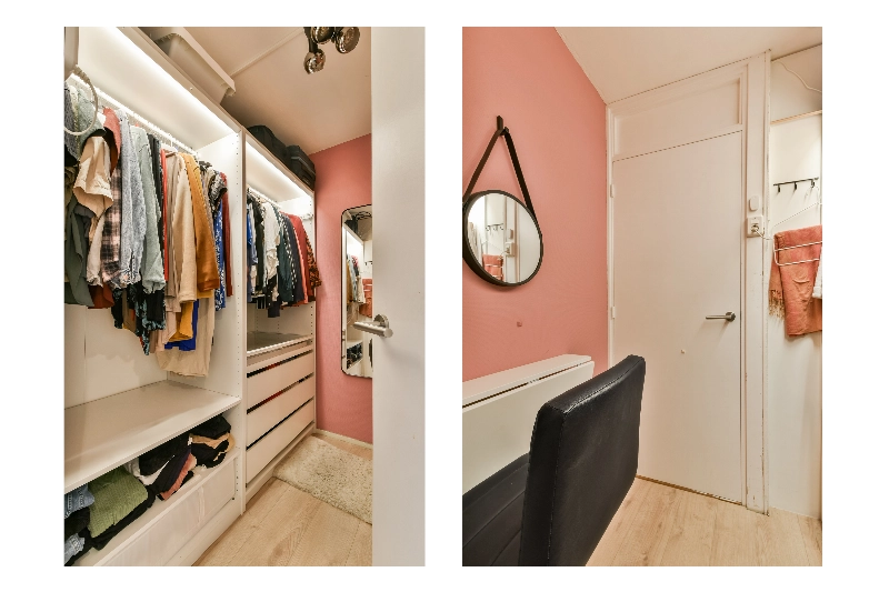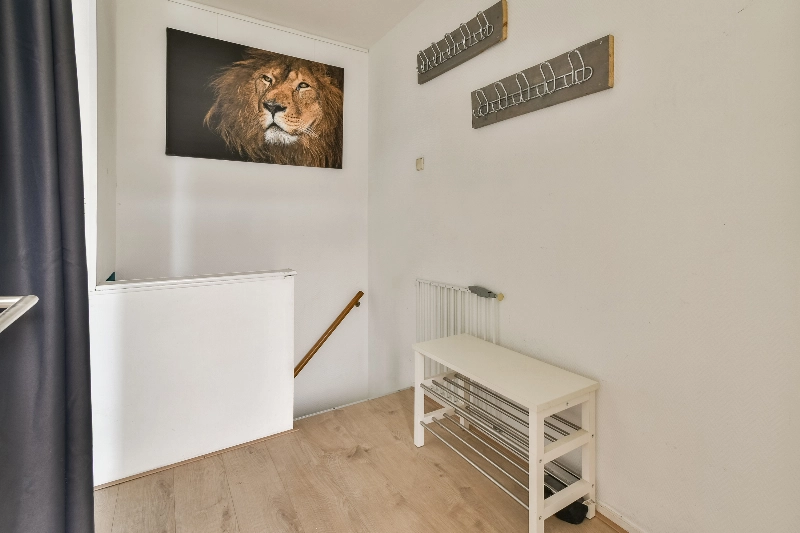 Overloop met een houtlook laminaatvloer over de gehele verdieping en een royale inloopkast.
