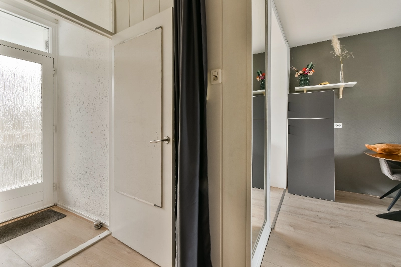 Afgesloten entree met bellentableau en brievenbussen. Van uit de centrale hal heb je toegang tot de bergingen en het trappenhuis.