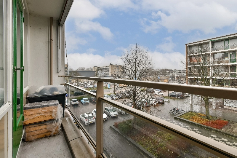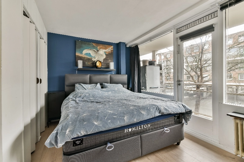 De ruime hoofdslaapkamer biedt toegang tot het op het westen gelegen balkon, waar je heerlijk van het zonnetje kan genieten. Daarnaast beschikt deze kamer over een grote vaste kast met de opstelling van de huurboiler. De afmeting van deze kamer is 4.65 x 2.90/2.63m.