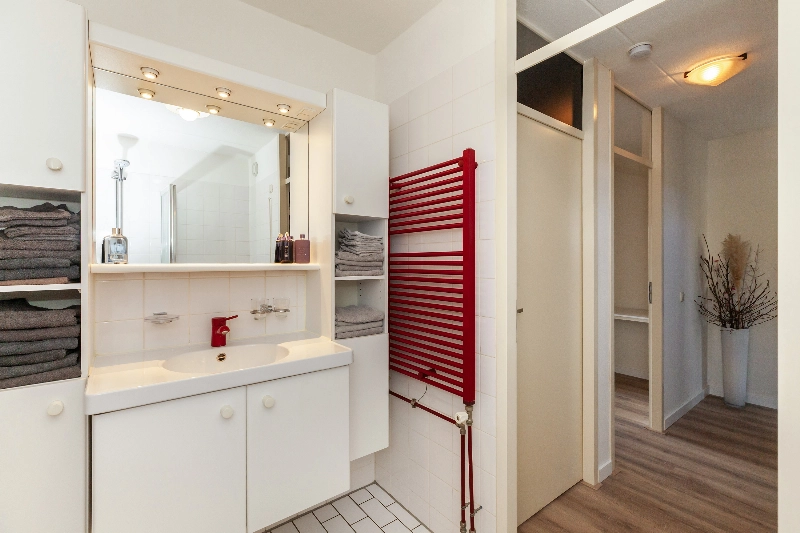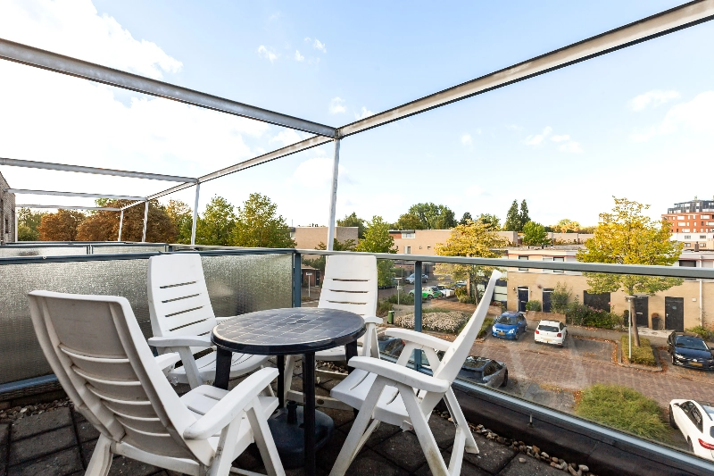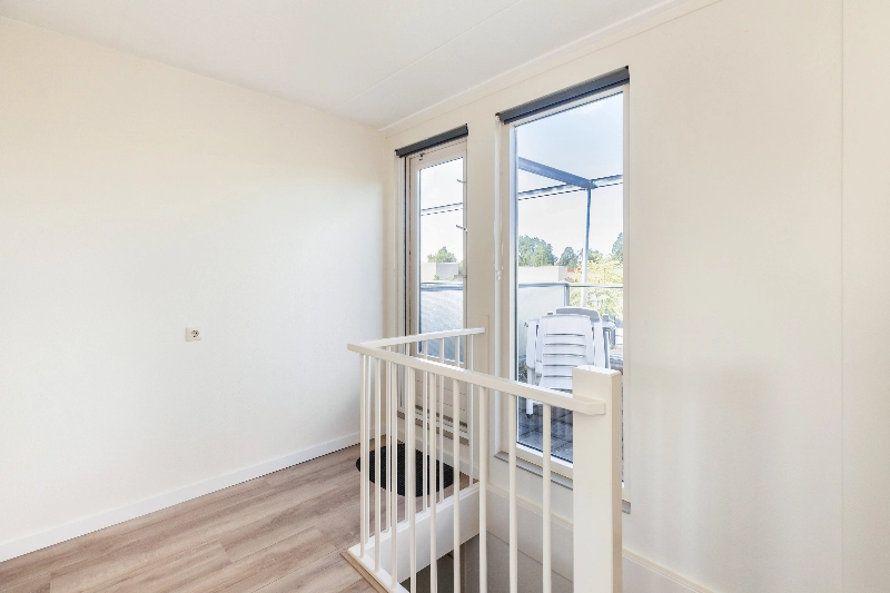 Op de ruime overloop is een vaste schuifkast en heeft u toegang tot het zonnige op het westen gelegen dakterras. De perfecte plek om na een drukke dag heerlijk te ontspannen in het avondzonnetje.