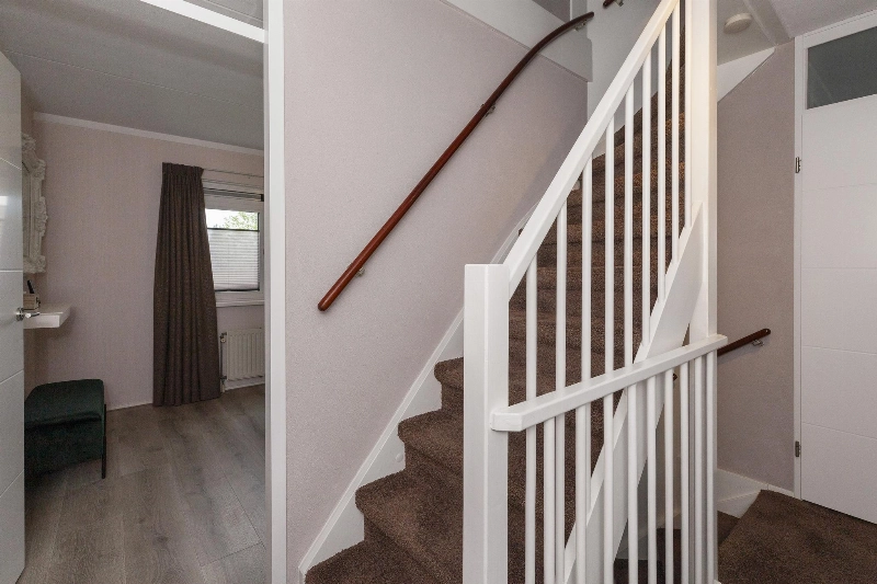 De begane grond is voorzien van een mooie PVC plavuizen die doorlopen naar de keuken. De slaapkamers zijn uitgevoerd met een strakke laminaatvloer en de deuren zijn vervangen voor een moderne versie.