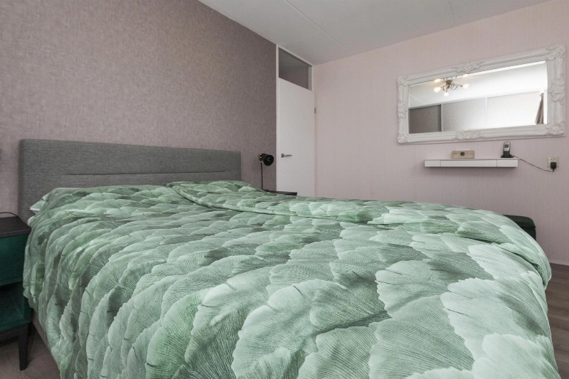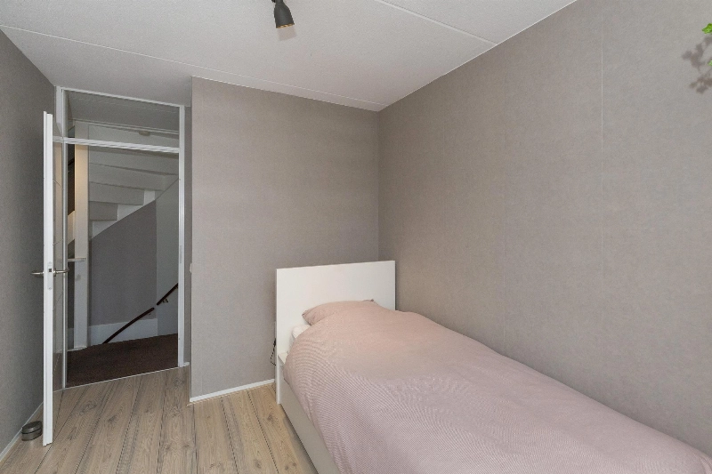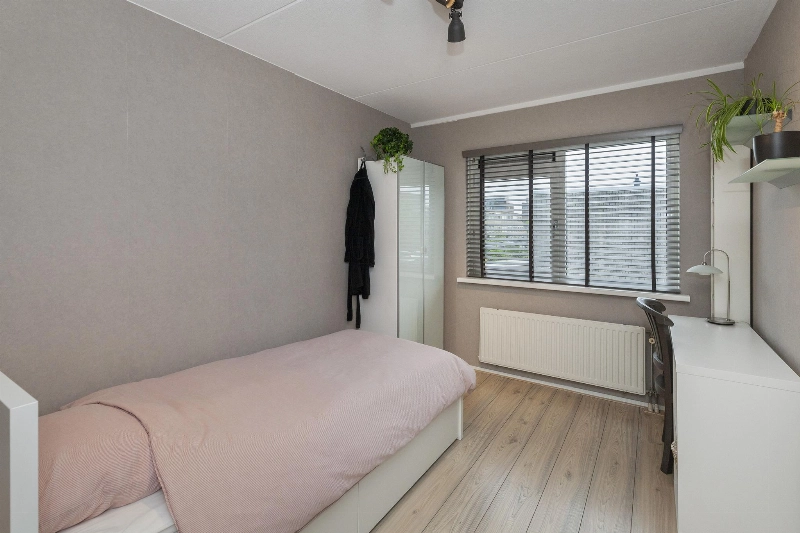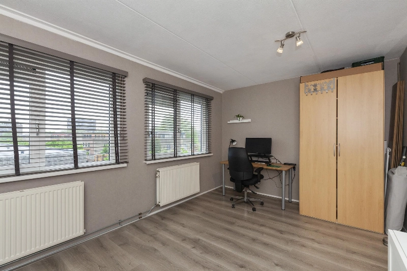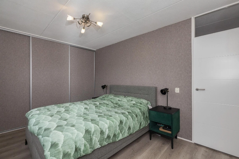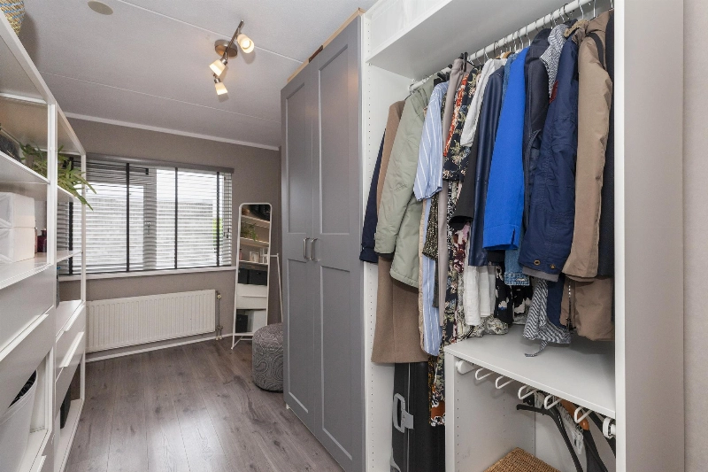 Slaapkamer III is gelegen aan de voorzijde en heeft een groet schuifkastenwand. Ook hier is de vloer afgewerkt met laminaat.