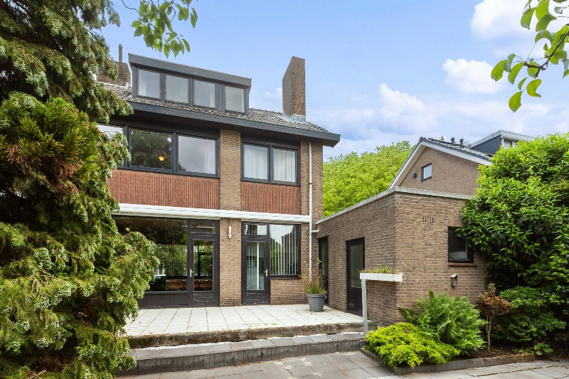 De woning beschikt over een royale voortuin met parkeergelegenheid voor twee auto's op eigen terrein. De achtertuin, gelegen op het zonnige zuidwesten, biedt volop privacy.