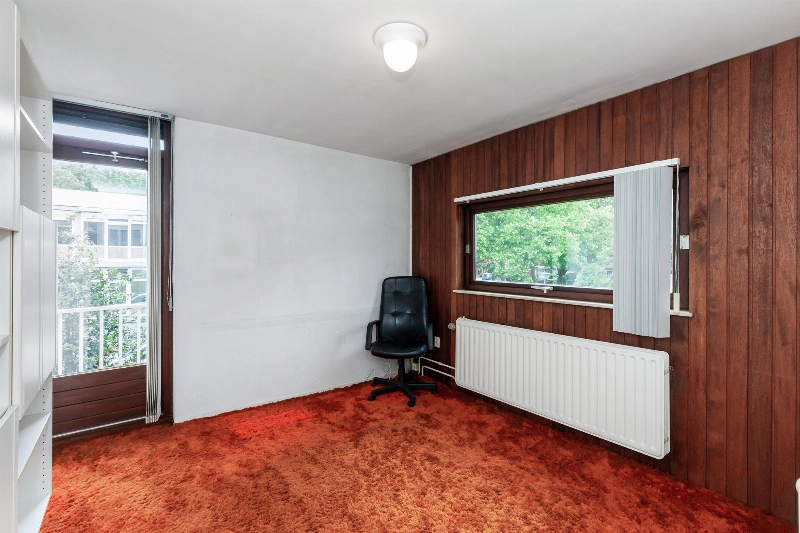De 2e slaapkamer is eveneens aan de voorzijde gelegen. Het zijraam zorgt voor extra lichtinval en ook via deze kamer is het balkon te bereiken. De afmeting van deze kamer is 3.59 x 3.07m.
