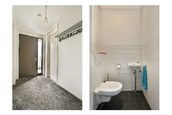 Afgesloten entree met bellentableau en brievenbussen. Via de lift of trap bereikt u de parkeerkelder en de woonverdiepingen. U betreedt de woning via de galerij op de 1e verdieping. Entree, hal met toegang tot alle vertrekken.