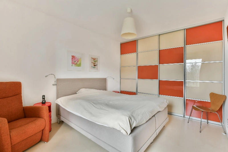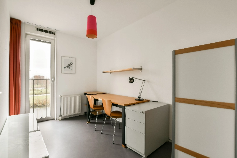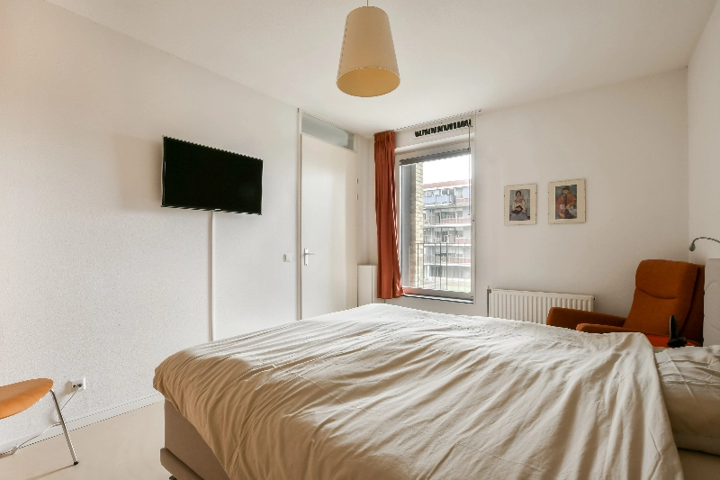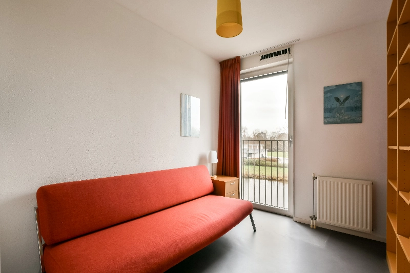 De derde ruime slaapkamer, gelegen aan de galerijzijde, is voorzien van een grote vaste schuifkast.