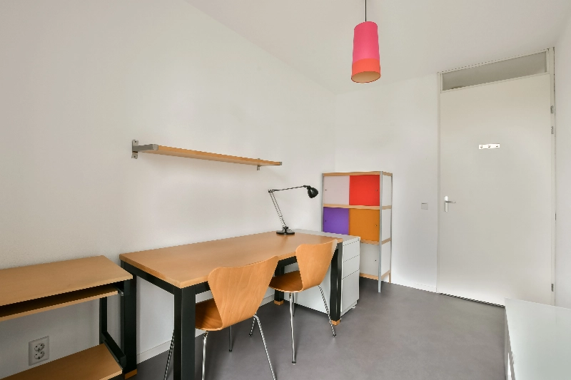 De gezellige woonkamer biedt toegang tot het zonnige, op het zuiden gelegen balkon. De vloer is afgewerkt met een lichte linoleumvloer. Vanuit de woonkamer is tevens de inpandige berging bereikbaar, voorzien van aansluitingen voor de wasmachine en droger.