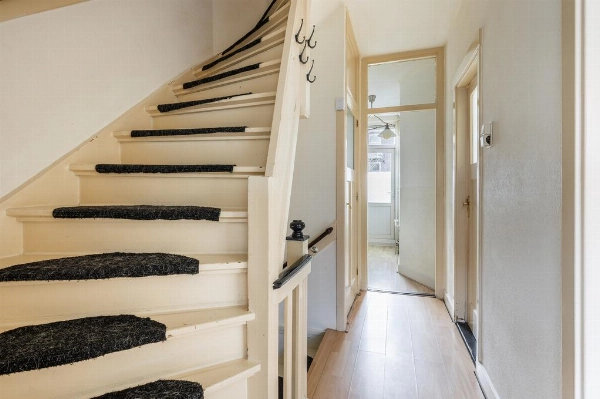Entree met meterkast en trapopgang naar de 1e verdieping.