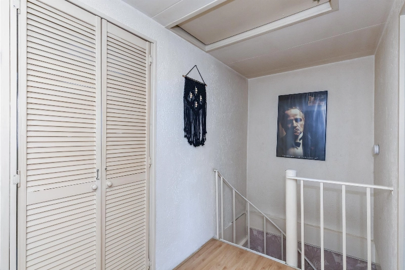 Ruime overloop met veel opbergruimte en de opstelling van de c.v. combiketel (Remeha 2011). Middels een vlizotrap bereik je de handige bergzolder.