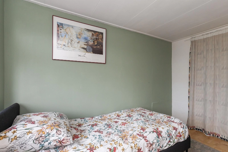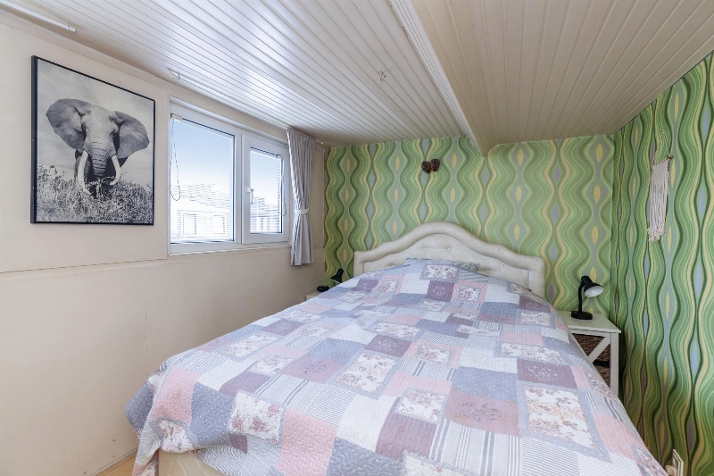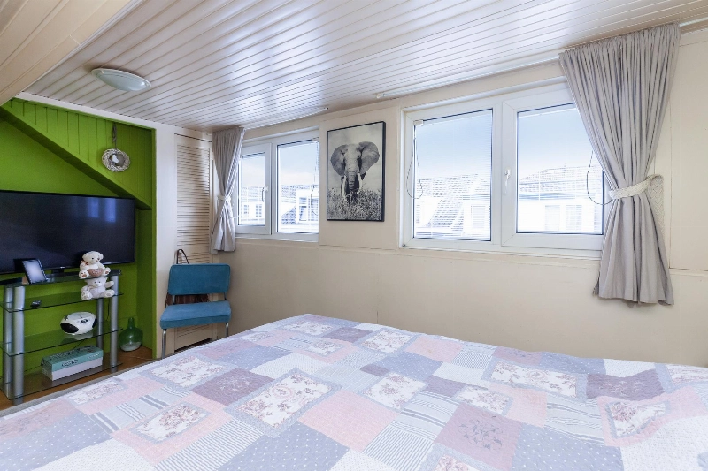 Slaapkamer I ligt aan de voorzijde van de woning en heeft een groot kunststof kozijn met dubbele beglazing waarbij de zonwering in het glas is verwerkt.