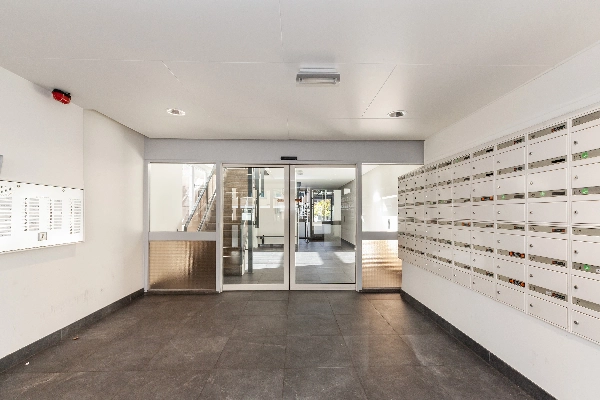Afgesloten entree met brievenbussen en bellentableau. Centrale hal met trapopgang en lift.