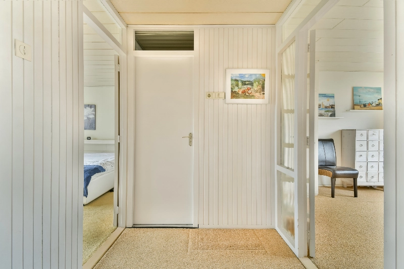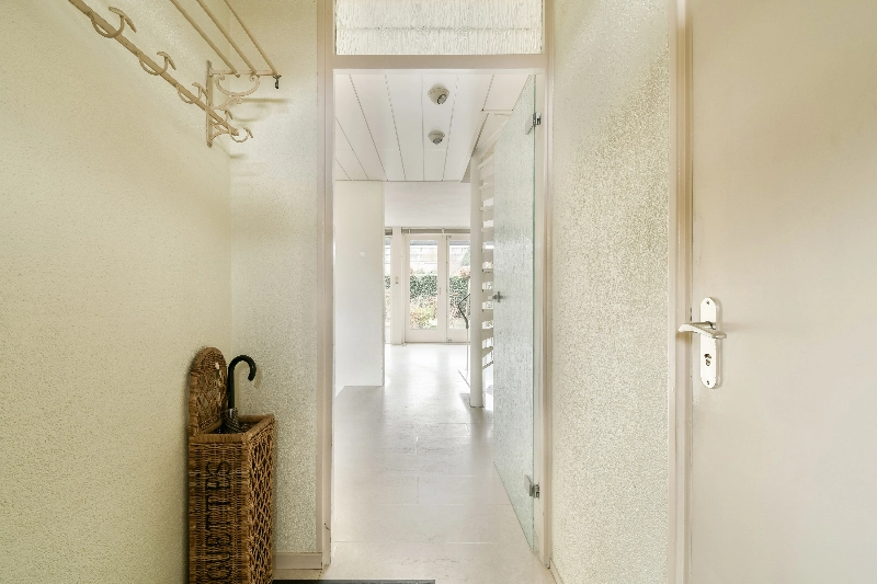 Ruime overloop met vloerbedekking die doorloopt naar de slaapkamers.
