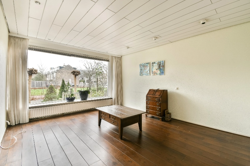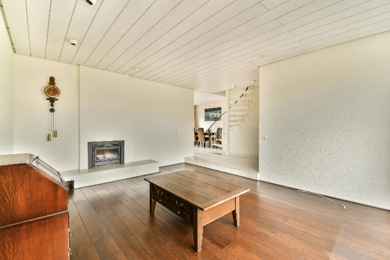 De mooie ruime woonkamer is afgewerkt met warme houten vloerdelen en beschikt over een sfeervolle inbouwhaard: de plek voor lange, gezellige avonden.
